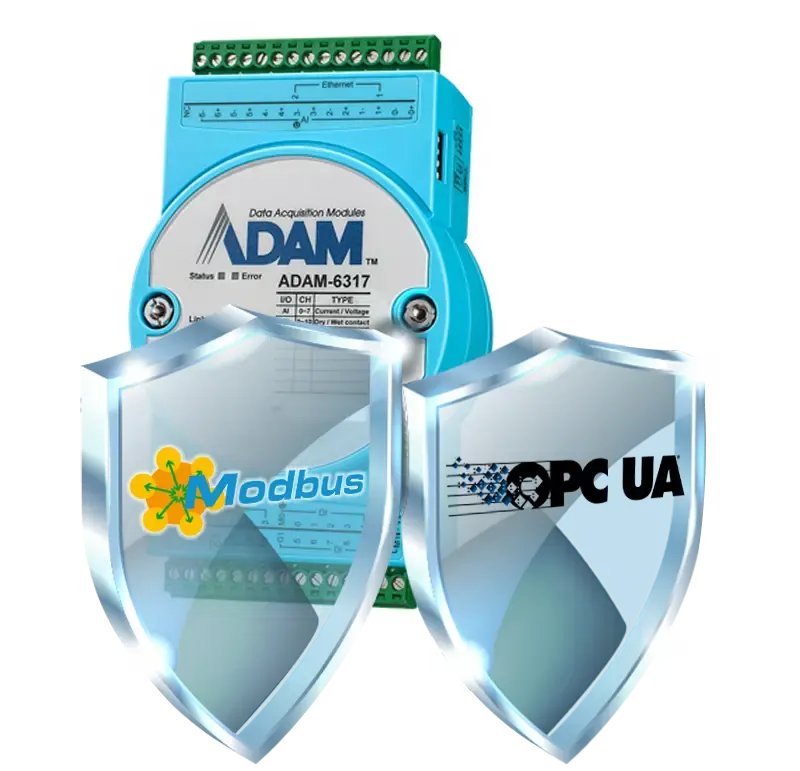 ADAM 6300 Secure Ethernet Module, OPC-UA & Modbus/TCP compatible.