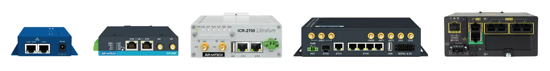 Designed for critical communications, this equipment meets a variety of uses such as video surveillance, IoT, VPNs, remote access, telemetry, or geolocation. From well-known brands like Cisco and Advantech, they combine robustness, advanced networking functions, and varied connectivity options, with models featuring WiFi, LAN, WAN, USB, serial, and I/O for Edge. Some are also manageable.