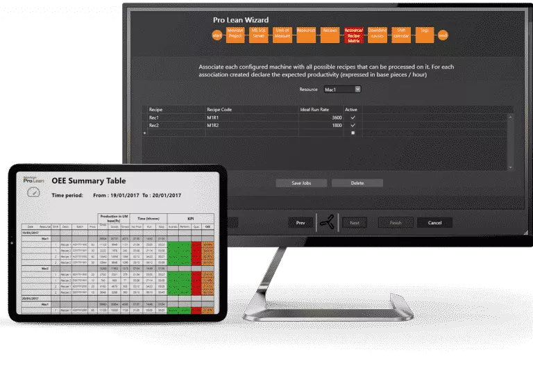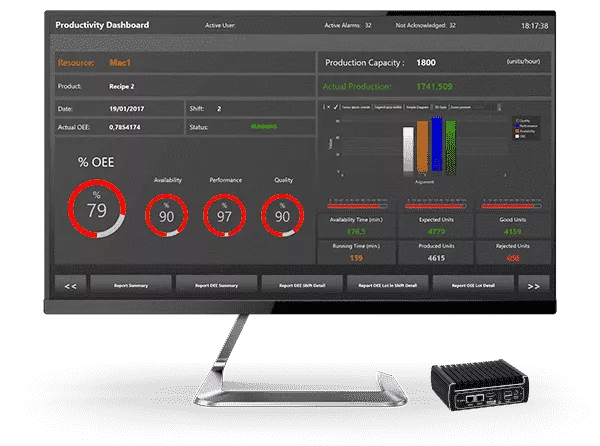 In order to facilitate the implementation of production efficiency tracking, we offer you a turnkey solution for calculating OEE - Overall Equipment Effectiveness. Called Pro.Lean Box, this offer integrates Movicon Pro.Lean and a complete Fanless PC.