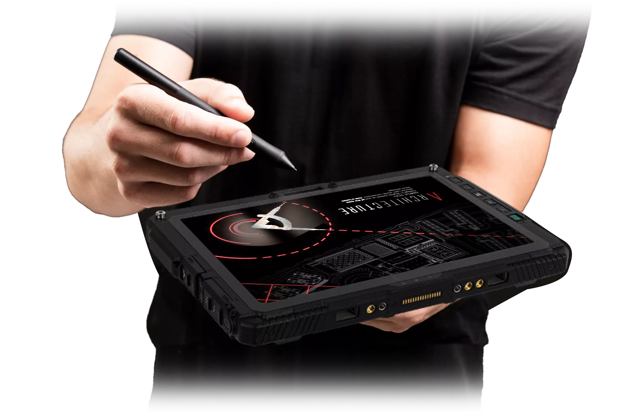 Dans le domaine du grand public il existe peu ou pas de tablettes équipées de connexion Ethernet aussi appelée RJ45. C'est cependant plus souvent le cas pour les professionnels. C'est pourquoi les tablettes durcies ont parfois la fonction Ethernet LAN en standard ou en option. Ce port peut être disponible directement sur la tablette ou à l'aide d'une station d'accueil pour bureau ou pour véhicule. Les entreprises recherchent ce type de fonctionnalité lorsque la tablette est installée sur un dock, ou une station de travail ou pour la synchronisation de données.