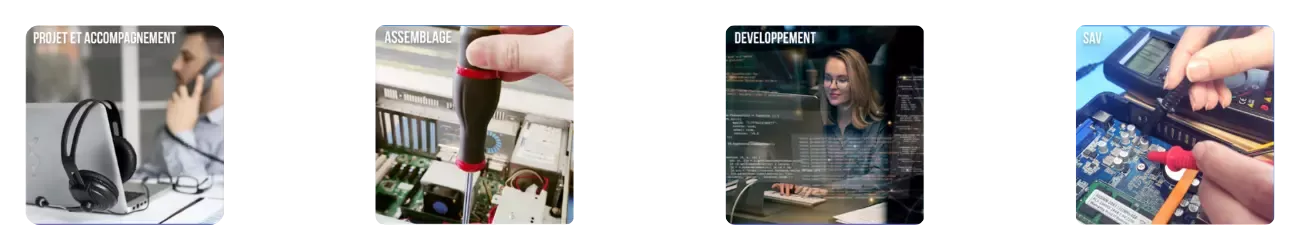 Une fois la phase de conseil terminée, nous passons à l'intégration et à l'assemblage. Nos techniciens qualifiés assemblent vos PC industriels, dans nos locaux en France, en utilisant des composants de haute qualité. Chaque étape de l'assemblage est rigoureusement contrôlée pour garantir la fiabilité et la performance des systèmes livrés. Grâce à notre expertise et à nos procédures éprouvées, nous assurons un assemblage précis et rapide, minimisant ainsi les temps d'arrêt et maximisant l'efficacité opérationnelle.