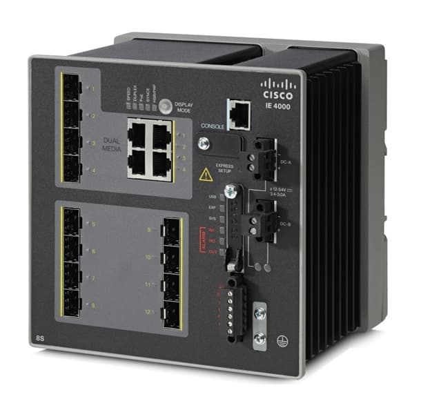 IE-4000-8S4G-E 12 Port Cisco Rugged Managed Switch with 8x Fast Ethernet ports and 4x Gigabit Combo SFP/RJ45 uplink ports