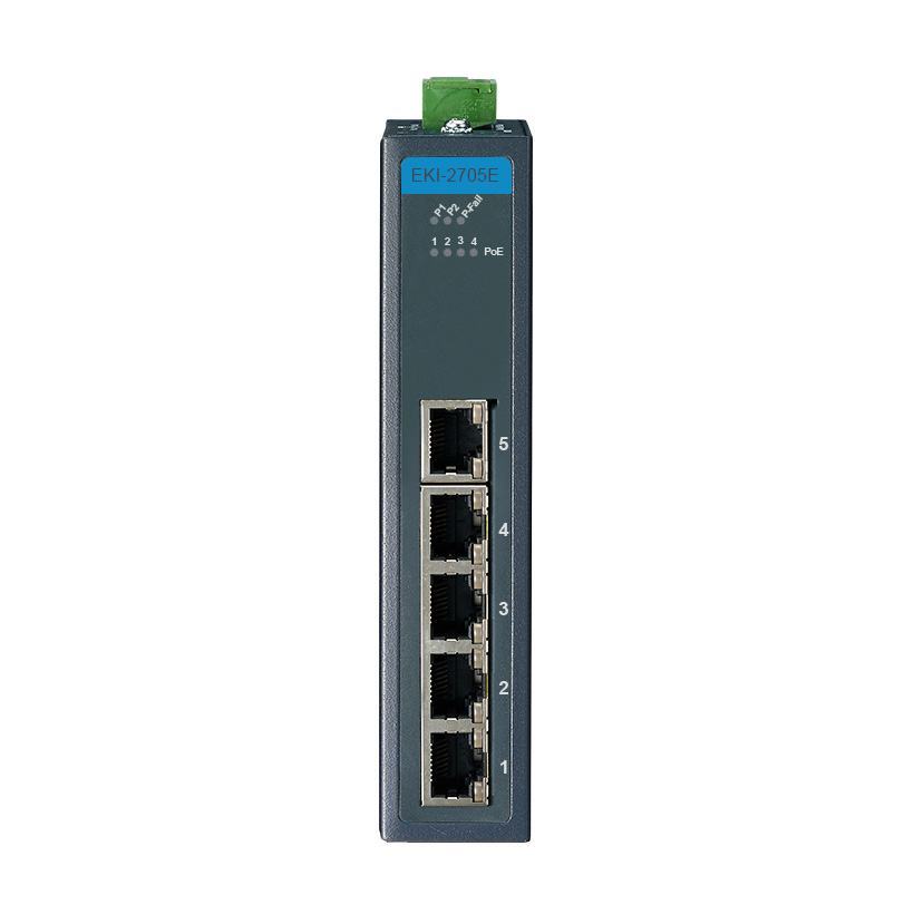 EKI-2705E-1GPI-A 4FE PoE+1GE, Unmanaged Ethernet Switch, IEEE802.3af/at, 24~48VDC, -40~75℃