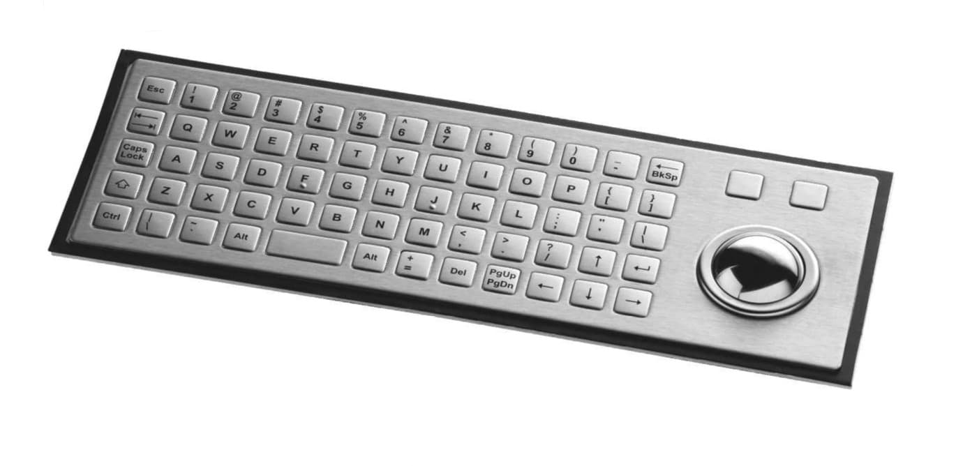 DGI64Q12R-TI 64 key stainless steel keyboard, square-shaped 12,5 mm keys, rear mounting, with trackball