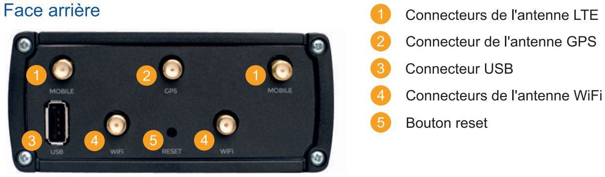 Les antennes peuvent être directement attachées au boitier du routeur avec des connecteurs à visser ou déportées par un câble de quelques mètres.