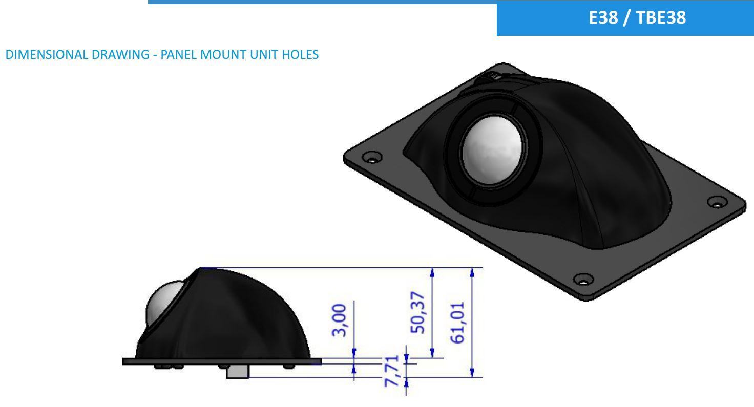 TBE38N1 Trackball montage en panneau avec trous de fixation