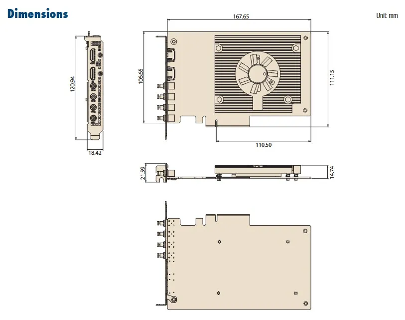 - capable de capturer jusqu'à une vidéo 4Kp60 et 16 canaux audio par port 12G-SDI