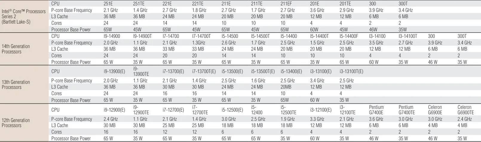 La AIMB-788G2-00A1 est compatible avec les 12, 13 et 14eme gen. de processeurs Intel. Cette carte mère ATX peut donc accueillir des CPU Intel Core i3, i5, i7 et i9. Elle peut également se voir équiper de 128Go de mémoire RAM maximum. Elle dispose en standard de 2 ports ethernet gigabit ainsi que de 3 sorties vidéos (DP, HDMI, VGA) et 8 ports USB externes.