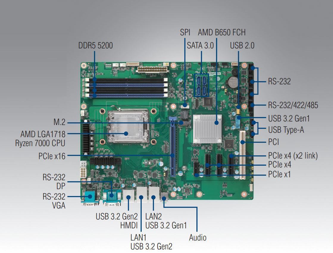 AIMB-723G2-00A1 Carte mère industrielle ATX LGA1718 AMD Ryzen™ 7000 avec DP/HDMI/VGA, DDR5, USB 3.2, M.2
