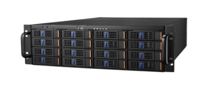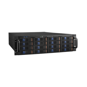 Sa façade intègre 16 baies hot-swap 3.5”/2.5”, permettant le remplacement à chaud des disques SAS 12Gb/s ou SATA 6Gb/s sans interruption de service. À l’arrière, 2 baies supplémentaires 2.5” hot-swap sont disponibles, idéales pour des disques système en RAID ou du cache SSD.