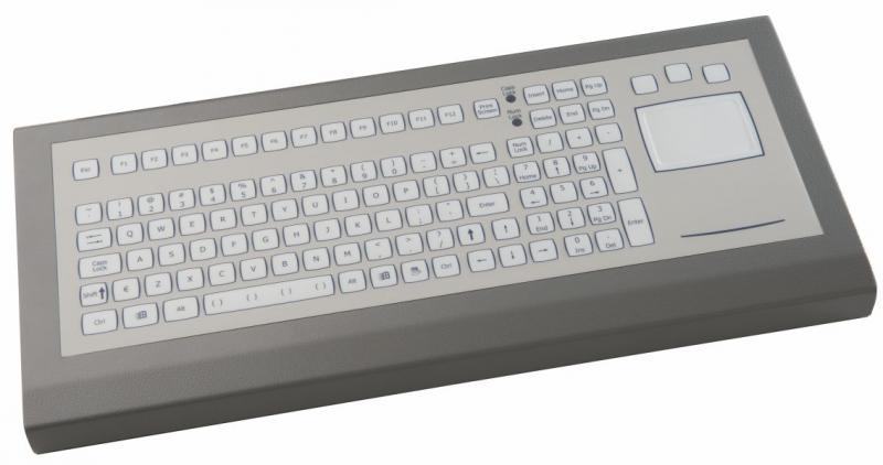 KSTP105S1USB Clavier industriel durci à poser sur table avec touch pad (pavé tactile) et touches à faible course 105 touches Pavé tactile (touchpad) Etanchéité: IP65 Interface USB US: QWERTY