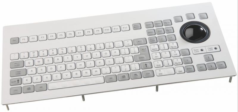 KBLT106F33USB Clavier industriel durci encastrable avec boule roulante industrielle (trackball) 106 touches Trackball de 50mm Etanchéité: IP65 Interface USB FR: AZERTY
