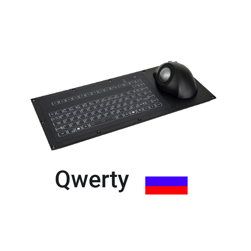 Clavier industriel IP65 compact encastrable rétroéclairé avec trackball ergonomique – Cyrillique QWERTY