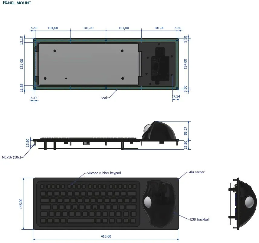 Ce clavier encastrable KTE85B0007-WLED en version cyrillique QWERTY propose 85 touches silicone rétroéclairées, une surface de saisie IP67, un trackball ergonomique 38 mm et une scroll wheel adaptée aux environnements industriels.