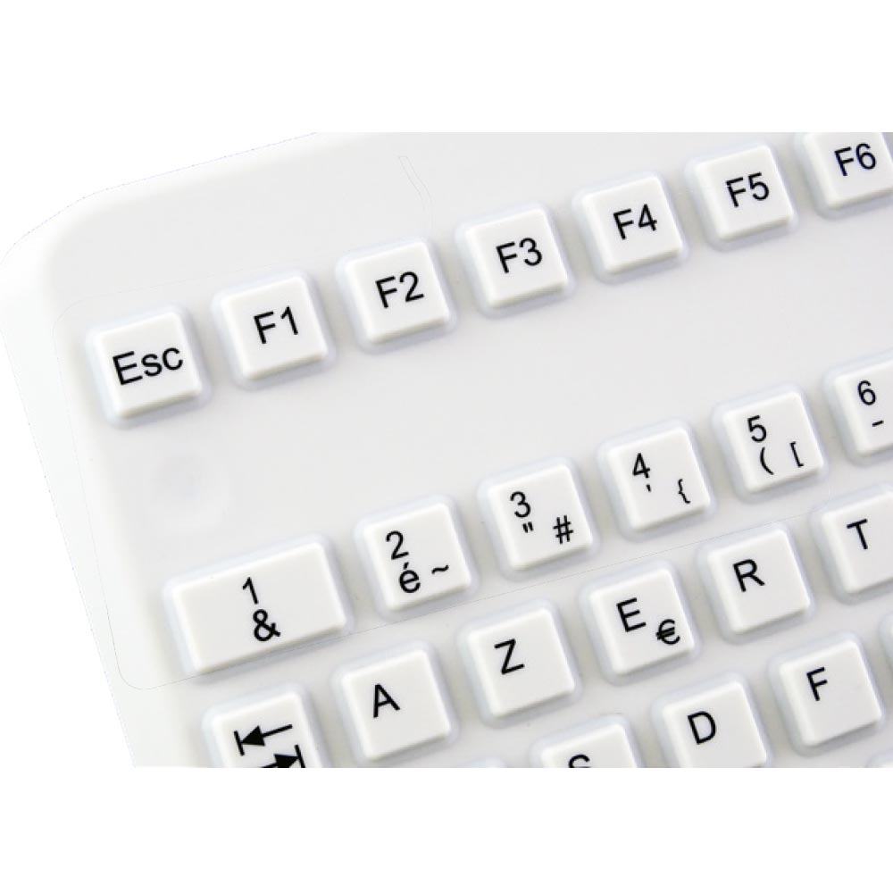 - Lavable et désinfectable : la conception en silicone permet un nettoyage aisé à l'aide de produits désinfectants, garantissant un clavier toujours propre et prêt à l'emploi dans les secteurs où la contamination doit être strictement évitée
