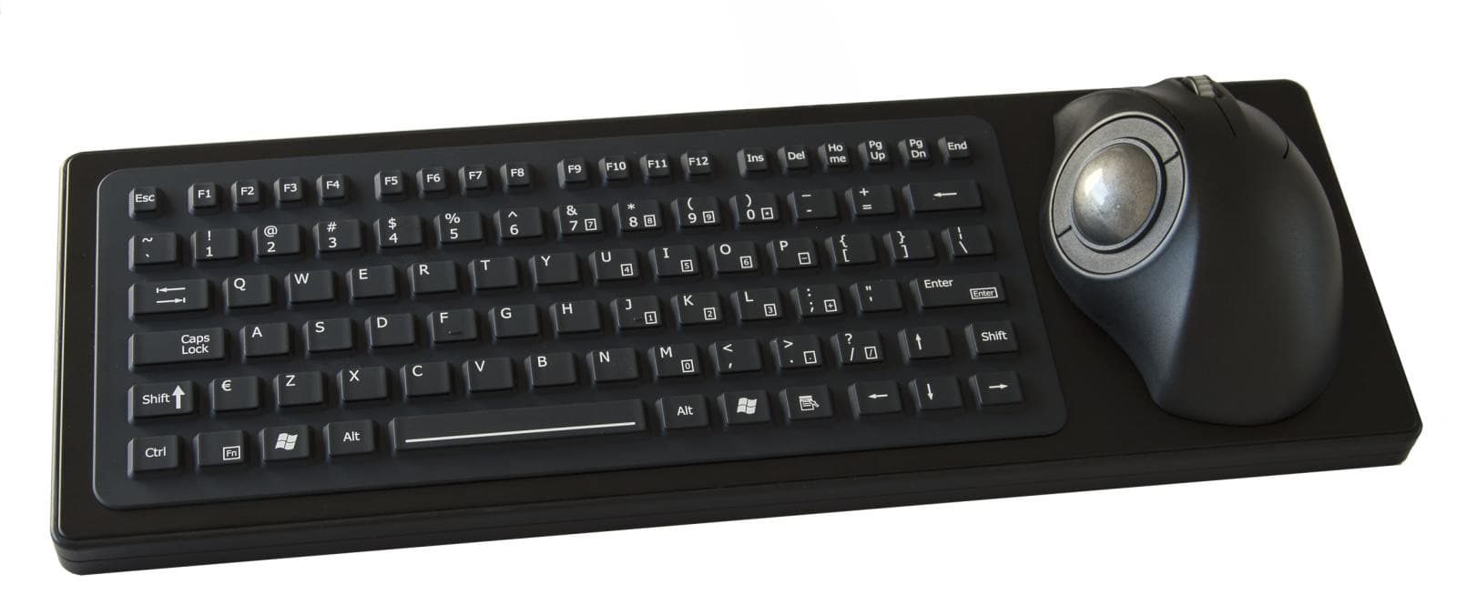RKTE85B0001-WLED Compact silicone rubber keyboard with ergonomic trackball panel mount QWERTY