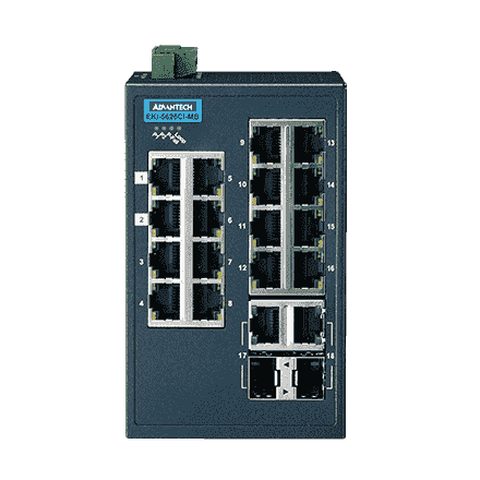 16FE+2G Combo Managed Ethernet Switch support Modbus/TCP, -40~75℃