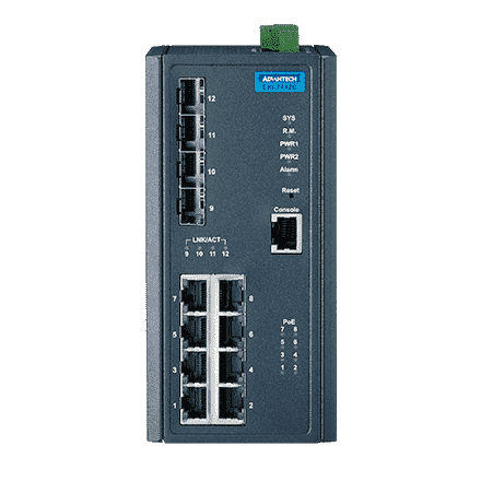 EKI-7712E-4FPI-AE ETHERNET DEVICE, 8FE+4SFP with POE wide temp