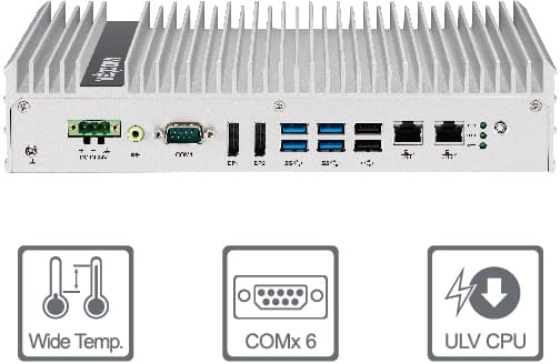 NISE4200 Fanless PC 6 Gen i5-6442EQ/i3-6102E BGA DVI,2DP,6COM,2GbE, 24VDC, -20~70°C