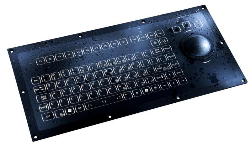 KSML92S0001-W-MC1 IEC-60945 Clavierindustriel rétro-éclairé par LED à poser sur table 92 touches "Duralight" - Trackball de 50mm Etanchéité: IP67 Interface USB US: QWERTY