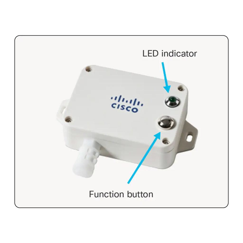 The AV201 is a LoRaWAN sensor which detects ambient air temperature and humidity. It is intended for use with Cisco Industrial Asset Vision.