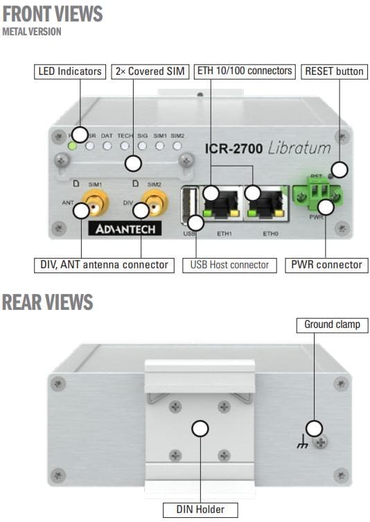 ICR-2734 Industrial 4G Router, 2 x LAN, 2x SIM, USB 2.0, metal case, no accessories