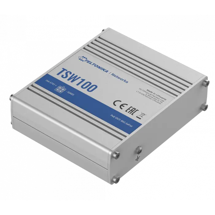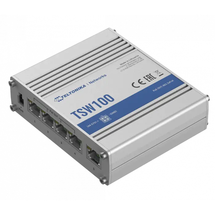 TSW100 Industrial unmanaged PoE+ switch 5 x LAN and Rail Din