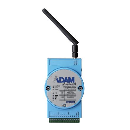 ADAM-2051PZ-AE Module ADAM ZigBee, 8 channels Digital Input Node with Power Amplifier Standard IEEE 802.15.4 sans fil Basse énergie Alimentation par 2 piles AA alcalines Résistance d'entrée de 10Kohm
