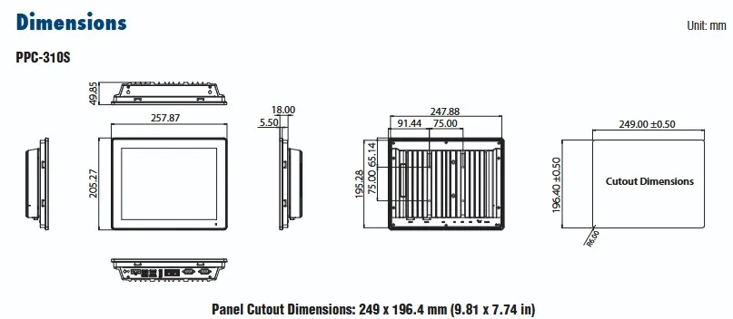 PPC-310S-RDI7A Panel PC fanless 10,4" avec Intel Core i7-1365UE extra plat IP66