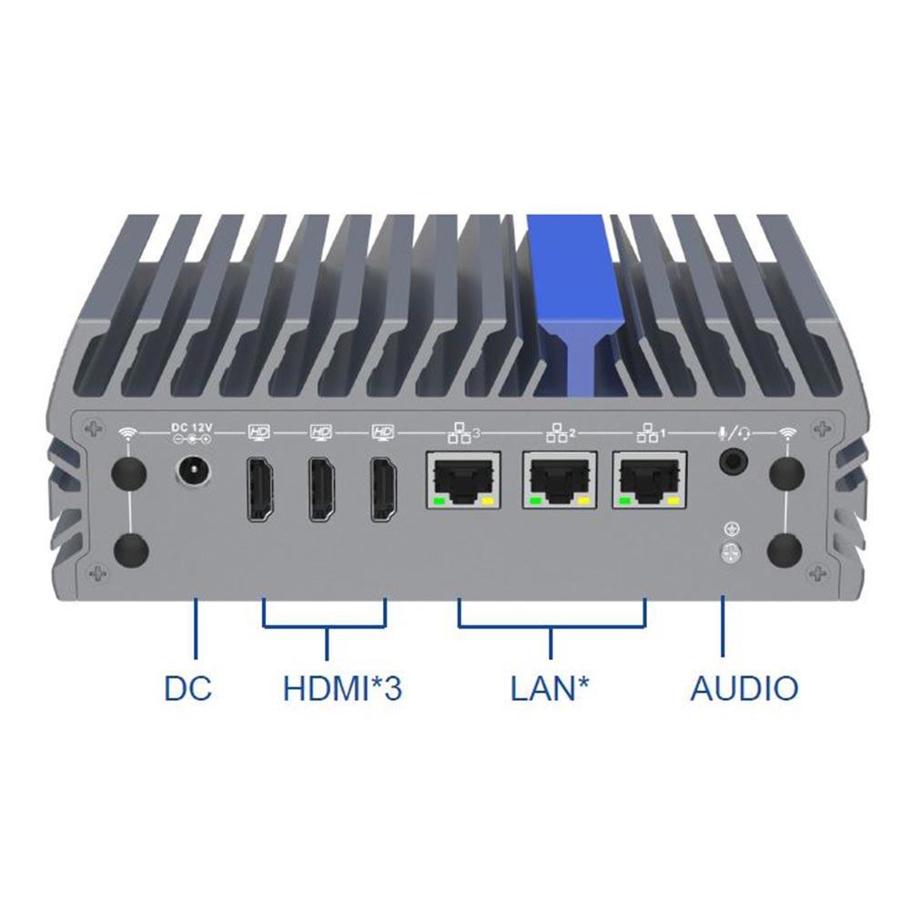 IEXP-502 PC Fanless compact avec un processeur Intel Core I3, I5 ou I7 de 12eme génération, 3 x HDMI, 1 x VGA, 3 x LAN, 2 x COM, 4x USB (-20 ~ +50°C)