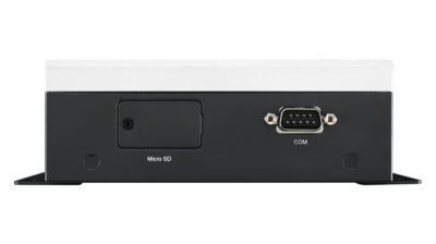 Il met particulièrement l’accent sur la connectivité industrielle avec 2 ports Gigabit Ethernet pour les échanges réseau, un port série externe compatible RS-232 / RS-422 / RS-485 pour l’intégration avec des équipements industriels, un port RS-232 interne, ainsi que 4 entrées et 4 sorties numériques.