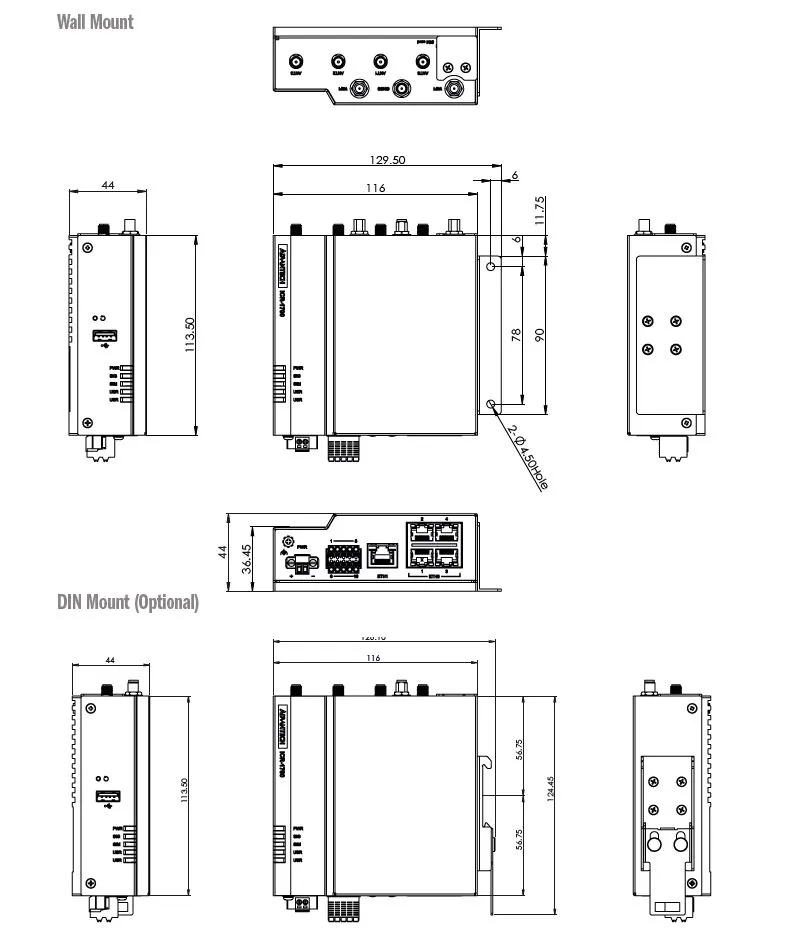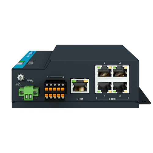 Interfaces ultra-complètes : équipé de 5 ports Ethernet Gigabit, d'entrées/sorties numériques (1× DI, 1× DO) et d'interfaces série (1× RS232 + 1× RS485), il s'adapte à tous vos équipements de terrain.