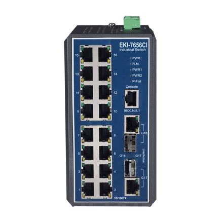 EKI-7656CI-AE Switch industriel, 16+2G Combo Ports Ind.Managed GbE Switch(Wide T)