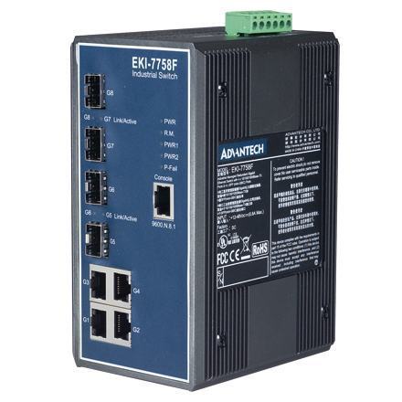 EKI-7758F-AE Switch industriel, 8G port Industrial Managed Redundant GbE Switch