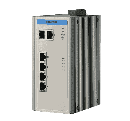 EKI-5624PI-AE Switch industriel avec protocole automatisme, 4FE with PoE+2GE Industry Switch