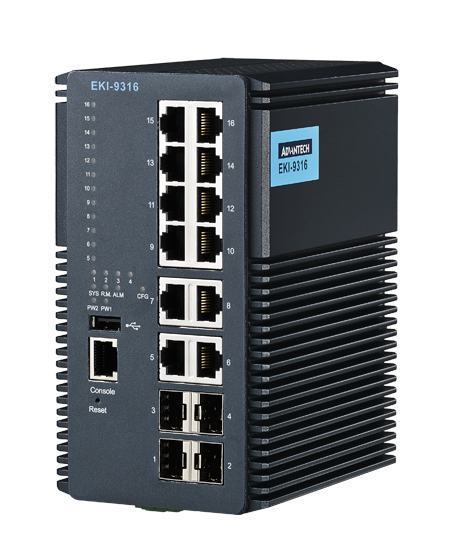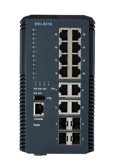 EKI-9316-C0ID42E Switch industriel, Industrial DIN-Rail Switch w/ 16 non-PoE ports