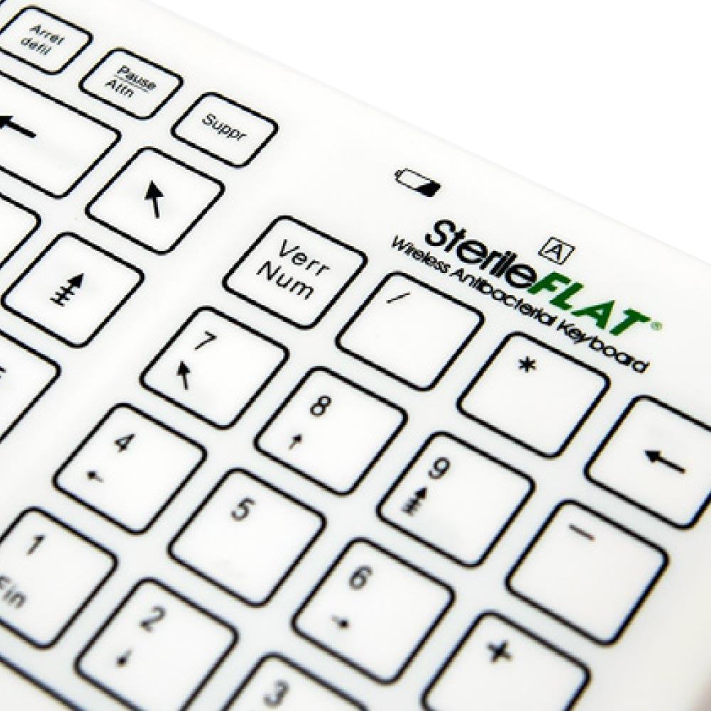 SF09-02W Ultra-flat medical silicone keyboard with 105 keys, IP65 disinfectable, wireless