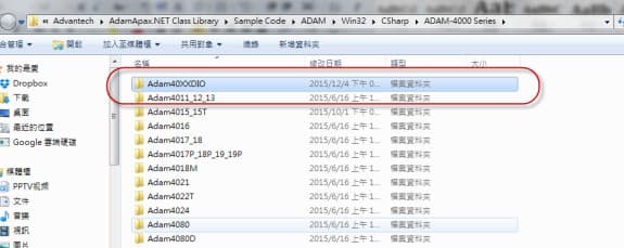 Une fois que la librairie ADAM/APAX.NET est correctement installée sur votre PC, vous retrouverez donc normalement le code d'exemple fourni par Advantech dans Advantech > AdamApax.NETT Class Library > Sample Code > ADAM > Win32 > CSharp > ADAM-4000 Series.
